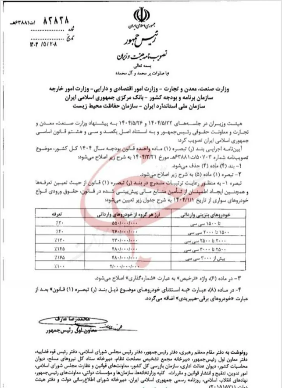 تعرفه گمرکی: ۱۳۰ تا ۱۶۵ درصد. بازگشت خودروهای لوکس و پرقدرت پس از سال‌ها ممنوعیت، مهم‌ترین شگفتی این آیین‌نامه است.